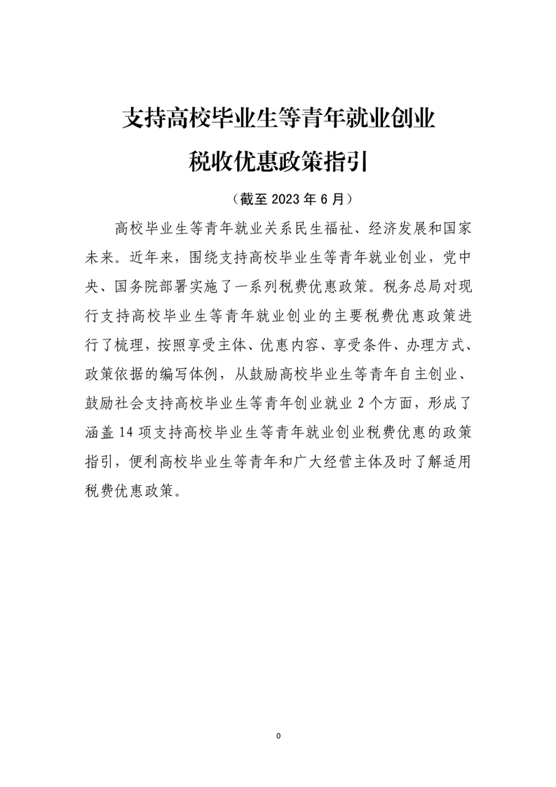 支持高校毕业生等青年就业创业税收优惠政策指引