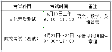 文化素质测试:由省考试院统一安排;院校考试(测试):详见我院招生章程。