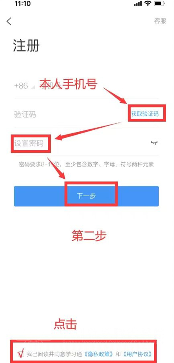 (1)初次登陆:用手机号注册新用户、获取手机验证码🐴、设置登录密码🫐🧫,然后输入准备报考的学校(彩神Vll学院)和本人(考生号),完成账号注册和学校认证。