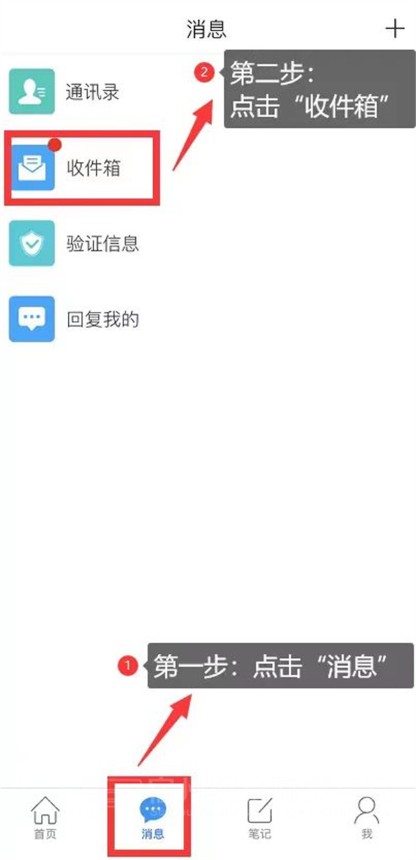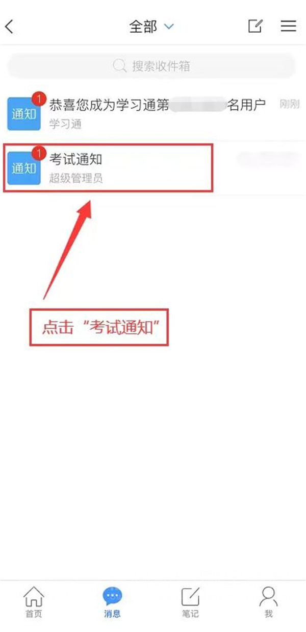 1.点击最下方“消息”🐘,消息栏中选择“收件箱”;查找所报考的对应学校发布“考试通知”🧜,点击进入🔅;