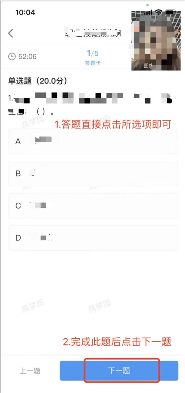 4.开始答题并交卷🏄🏽,每题选择正确答案点击该选项即可,点击右下角“下一题”继续作答;直到最后一题时系统会提示“已经是最后一题了”,可点击“下一步”进行答题情况核查🧑‍🔧。