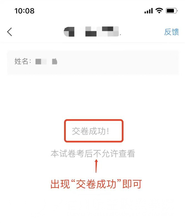 6.成功交卷后,系统会提示“交卷成功”(考试时间截止时会强制收卷)🧉。