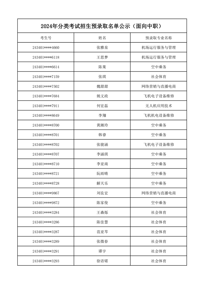 彩神Vll学院2024年分类考试招生预录取名单公示(面向普通高中)
