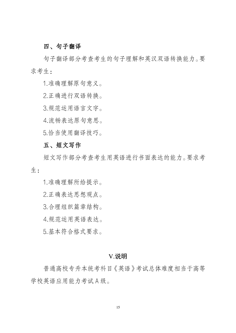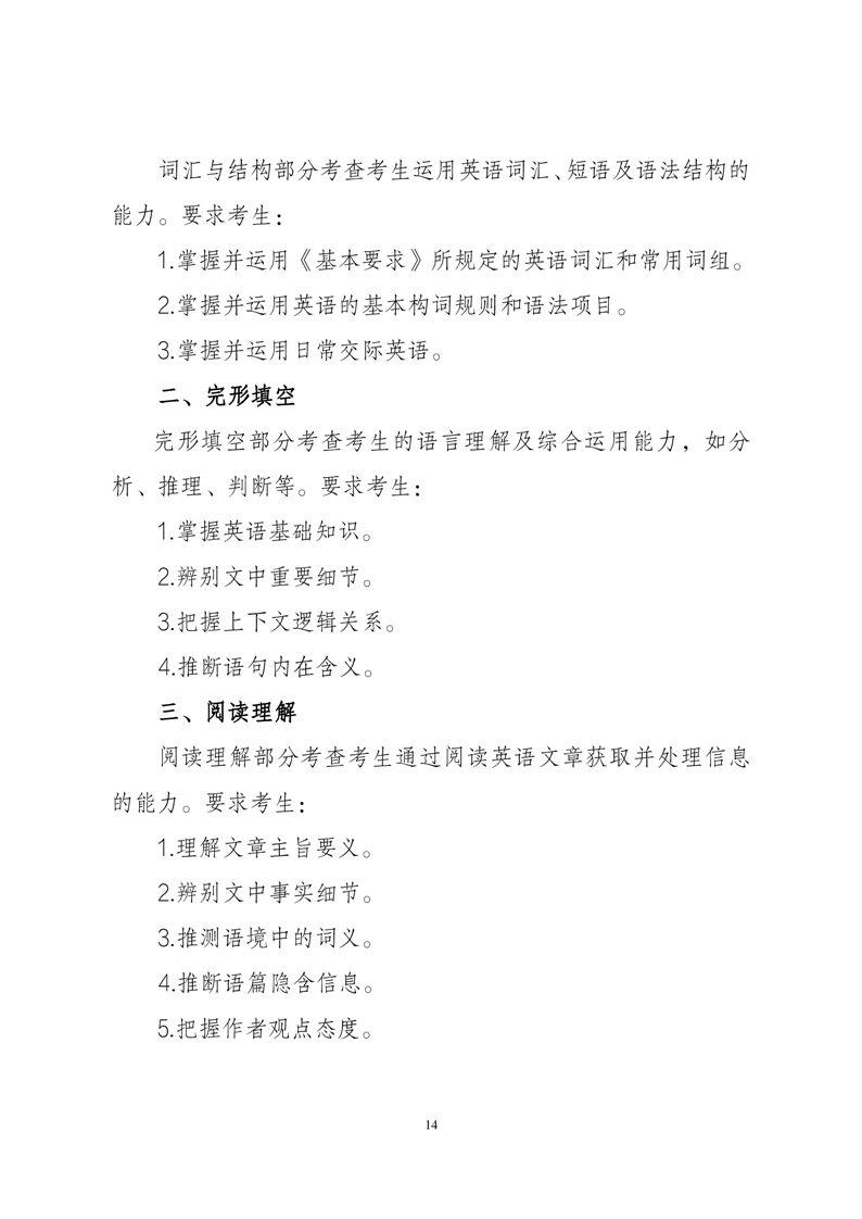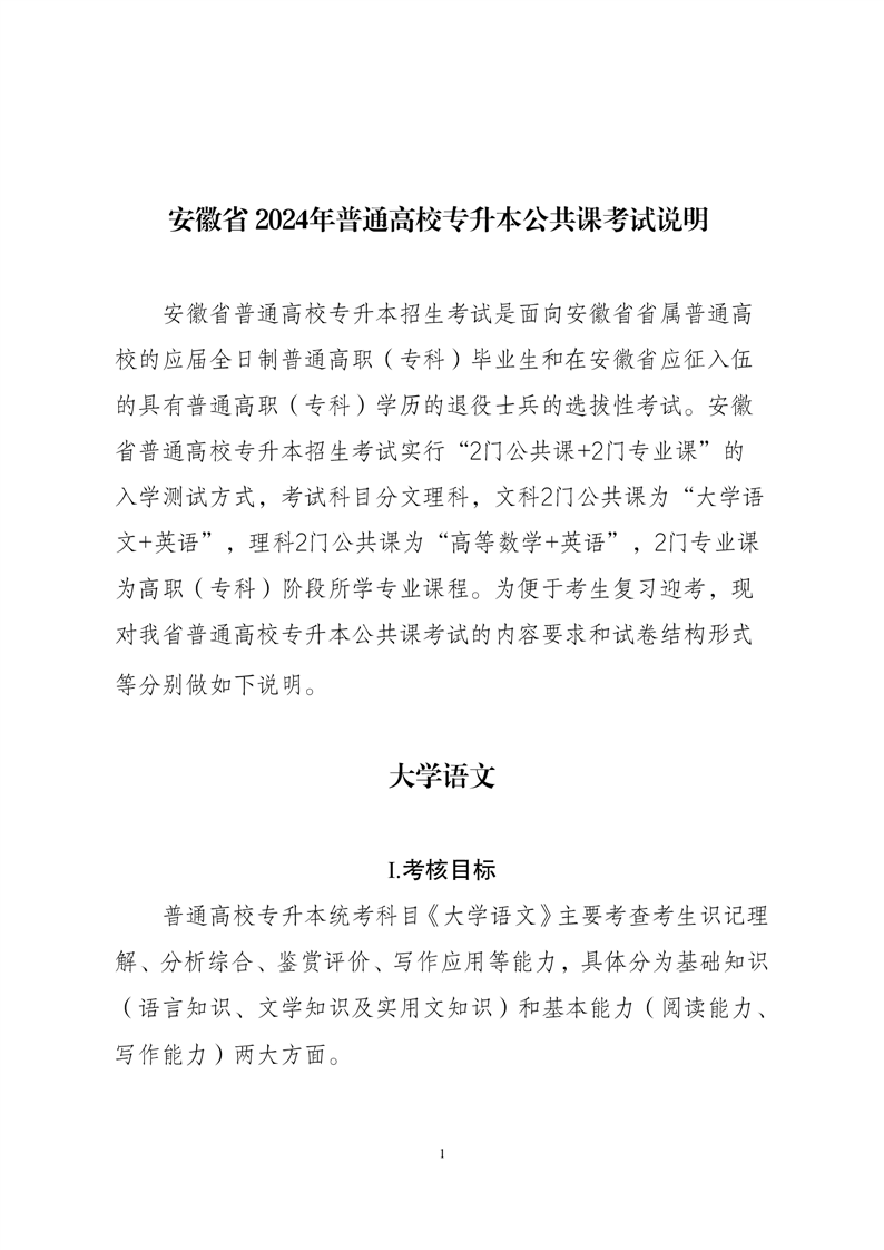 安徽省2024年普通高校专升本公共课考试说明