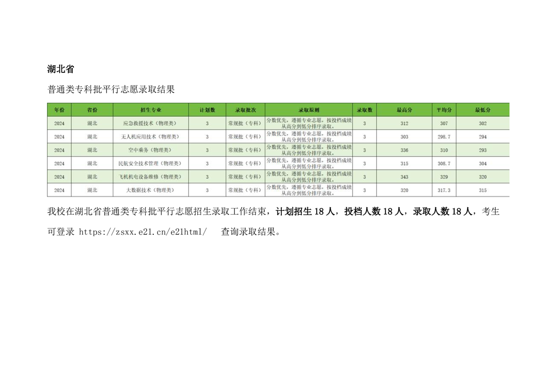 湖北省普通类专科批平行志愿录取结果