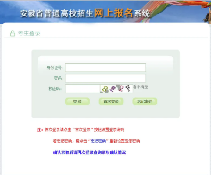 1.使用电脑浏览器登录gkbm.ahzsks.cn。如果是第一次登录系统,请点击“首次登录”按钮,跳转至设置登录密码页面🫷🏽。以下图片仅为示例,以确认网站呈现的内容为准🧇。