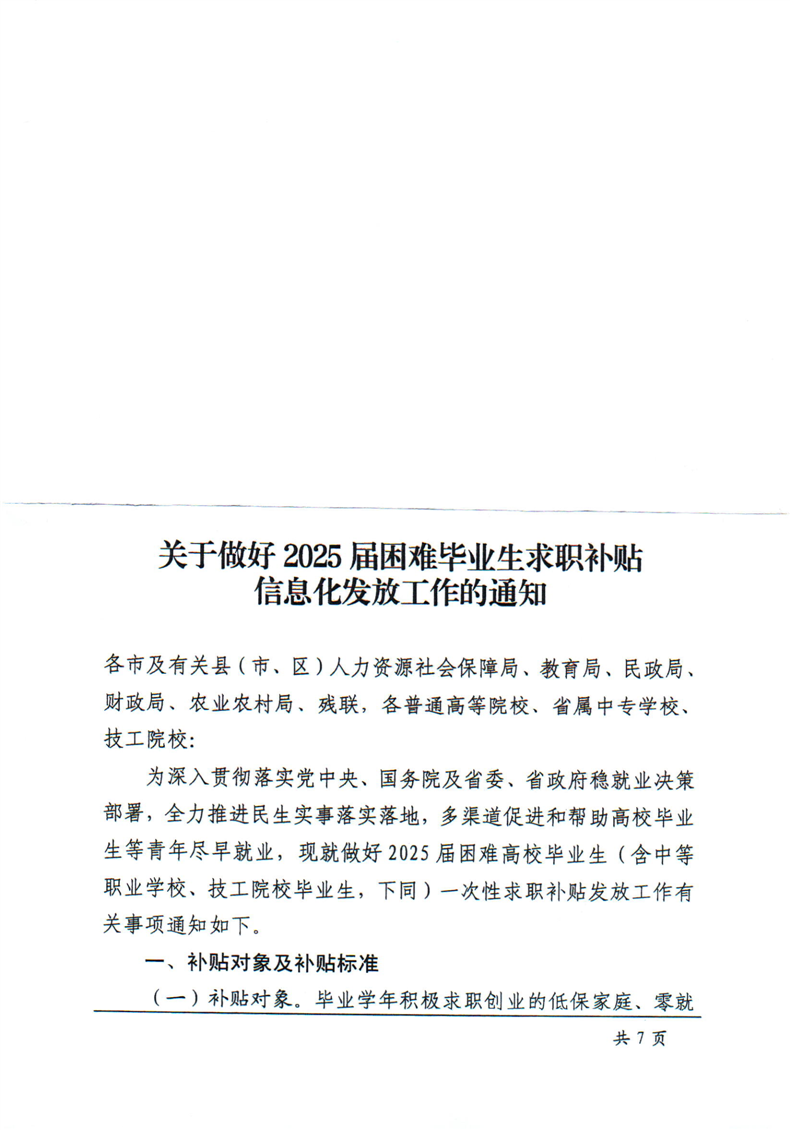 关于转发《做好2025届困难毕业生求职补贴信息化发放工作的通知》的通知