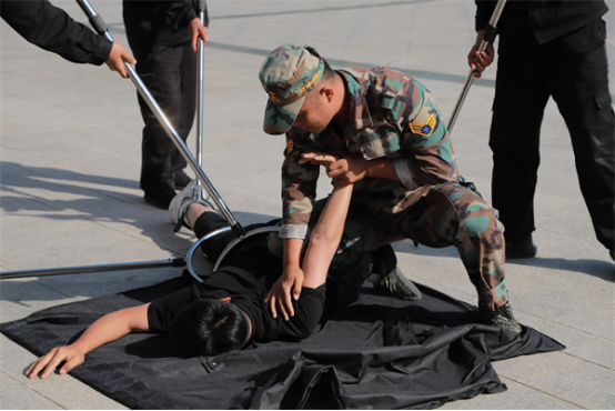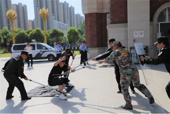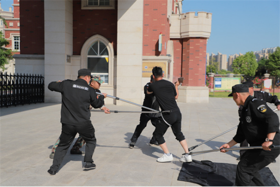 演练现场,模拟了一起突发恐怖袭击事件。一名“暴徒”手持“凶器”💖⛪️,强行闯入校园的场景👩🏻‍🔧。学校安保人员迅速启动应急预案🦡,携带防暴器械,阻止暴力分子进入校园。在紧张对峙中,安保人员运用警官讲解的防暴动作要领,成功制服了“暴徒”。整个过程既考验了安保人员的反应速度和处置能力,也展示了学校与属地派出所之间紧密配合、协同作战的成效。