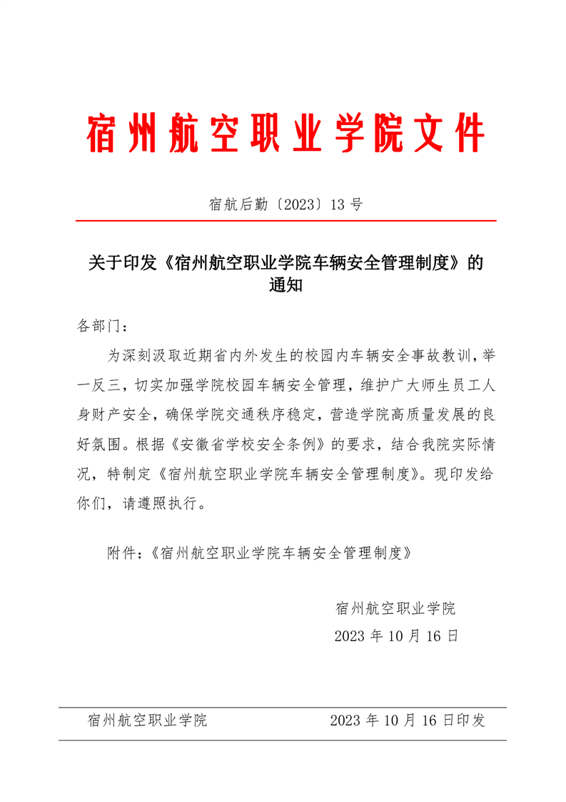 关于印发《彩神Vll学院车辆安全管理制度》的通知