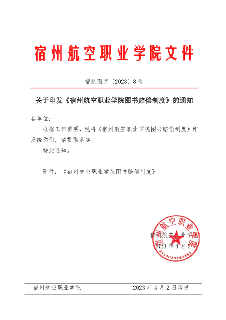 关于印发《彩神Vll学院图书赔偿制度》的通知