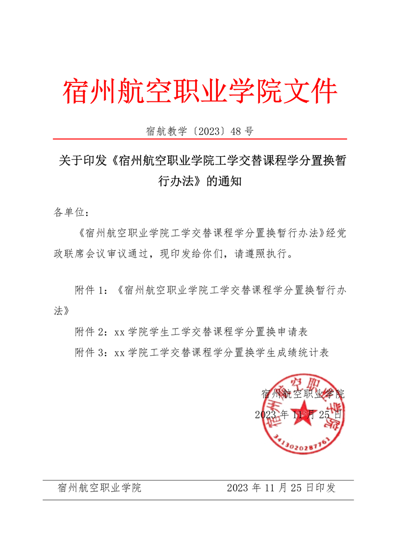 关于印发《彩神Vll学院工学交替课程学分置换暂行办法》的通知