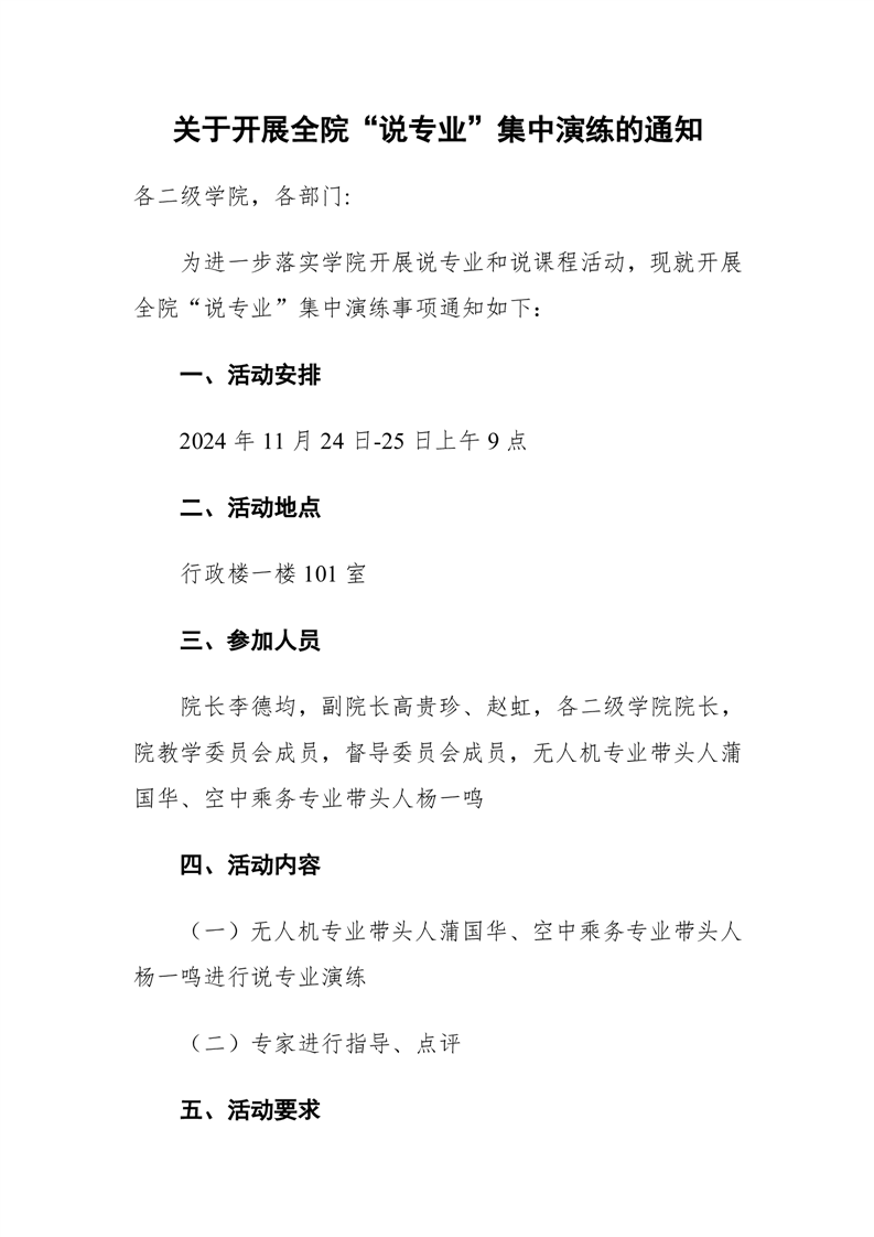 关于开展全院“说专业”集中演练的通知