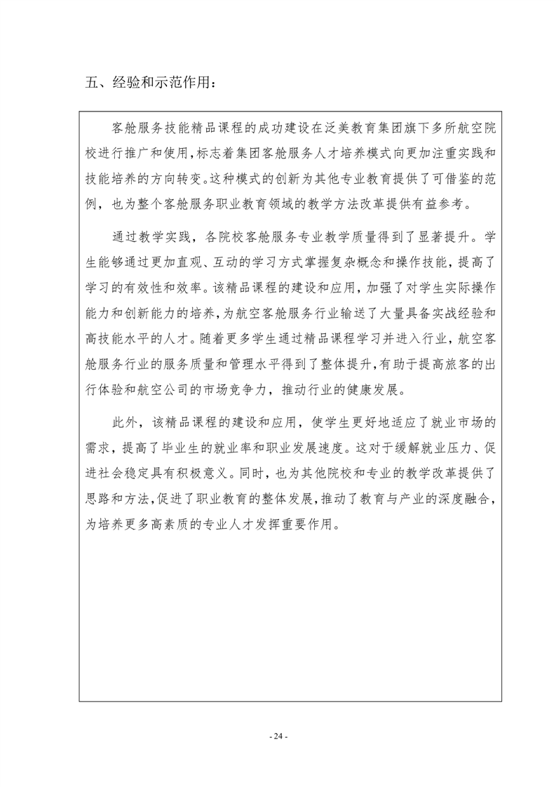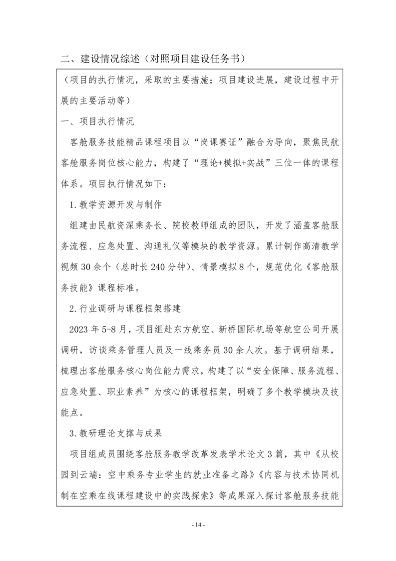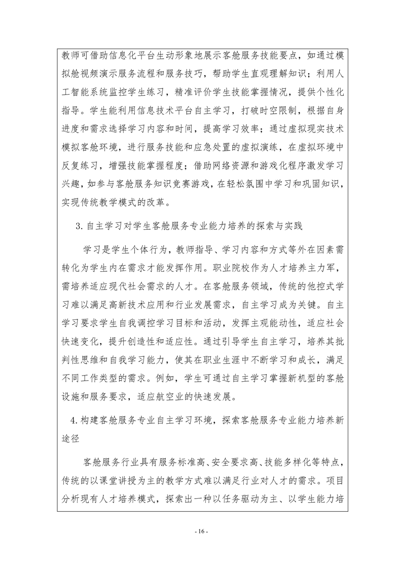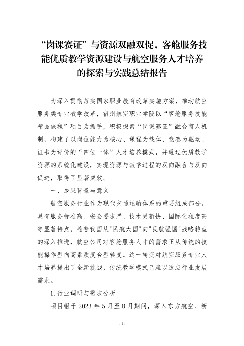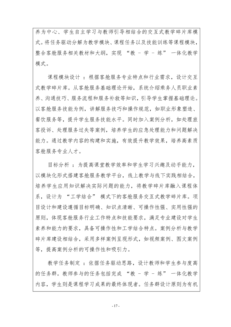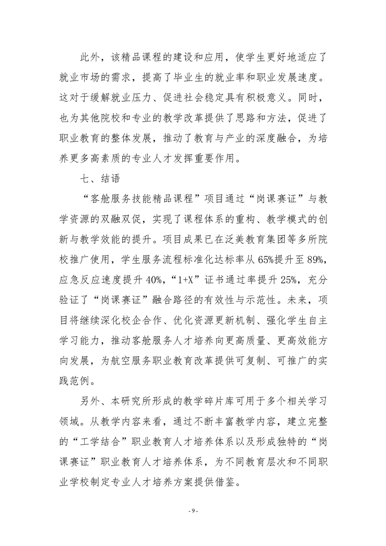 “岗课赛证”与资源双融双促,客舱服务技能优质教学资源建设与航空服务人才培养的探索与实践佐证材料