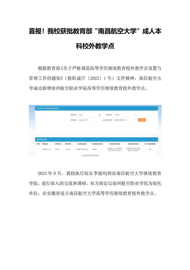 喜报🧖🏽!我校获批教育部“南昌航空大学”成人本科校外教学点