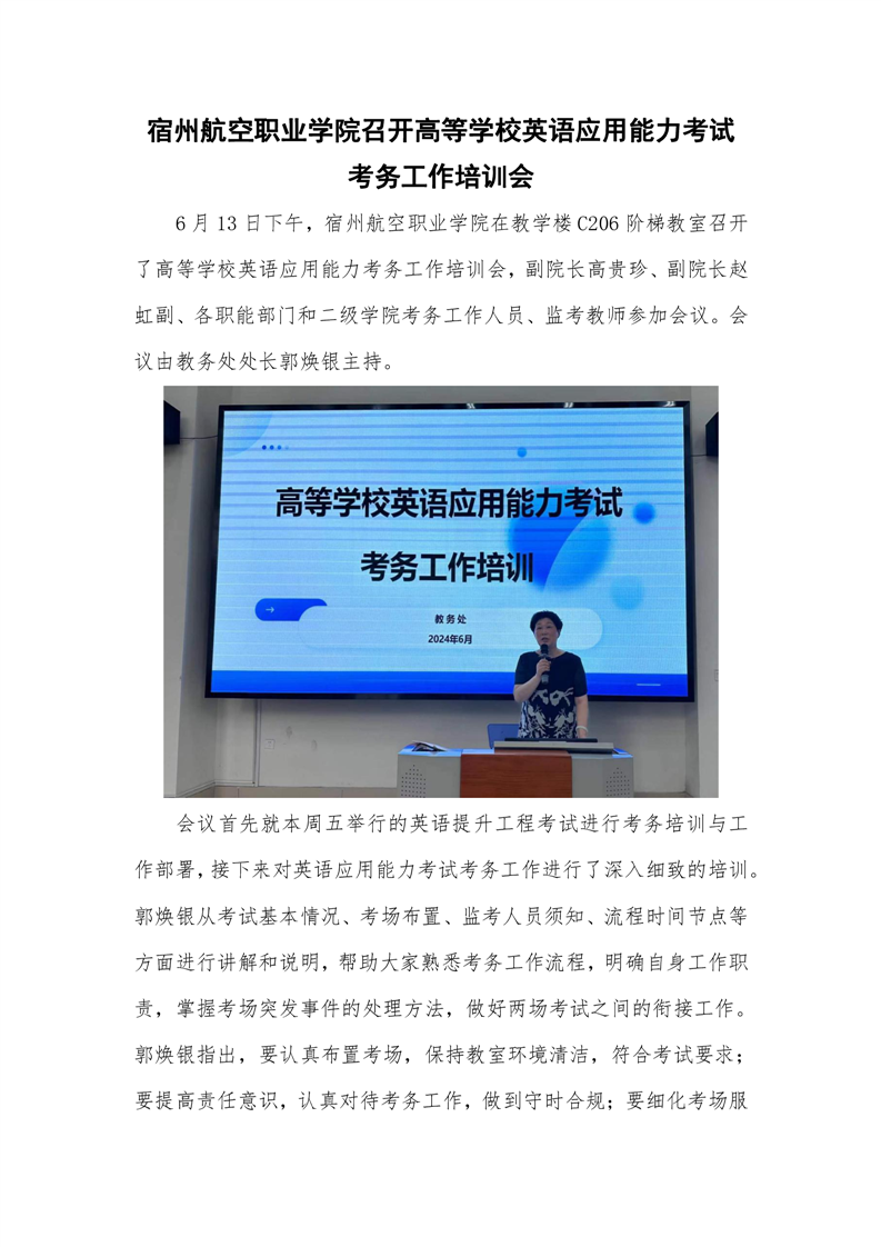 宿州航空学院召开 2023-2024 学年第二学期第七次教学工作会议