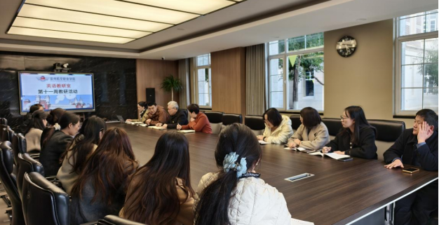 1111下午英语教研室于就业楼一楼会议室开展学期第十一周的教研活动。本次会议由英语教研室副主任马玉秀主持🫢,全体英语教研室教师出席。学院教学副院长高贵珍及教务处处长郭焕银参加并指导相关工作。