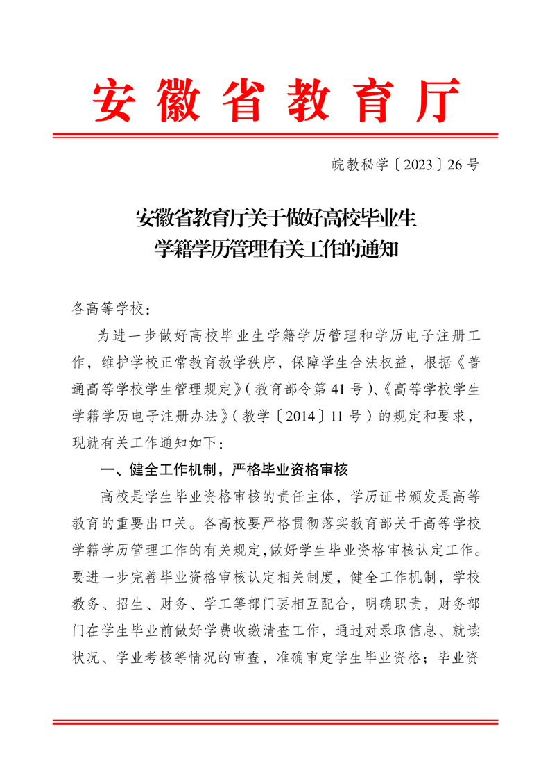 【省级文件】安徽省教育厅关于做好高校毕业生学籍学历管理有关工作的通知