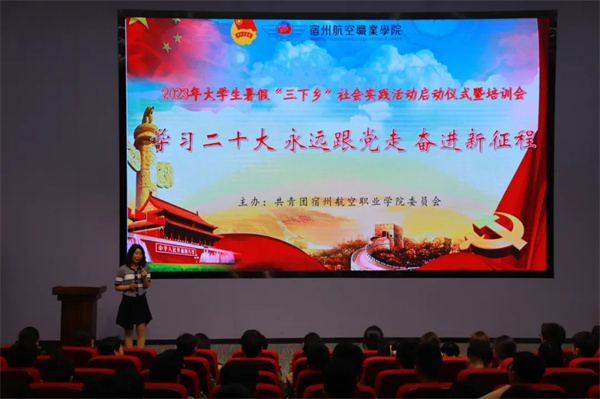 为深入学习宣传贯彻习近平新时代中国特色社会主义思想👩🏽🏫,贯彻落实习近平总书记关于青年工作的重要思想,引导和帮助广大青年学生上好与现实相结合的“大思想政课”,在社会课堂中“受教育🧷,长才干🧗🏿♀️,做贡献”,坚定信念听党话🧑🏻🎤、跟党走,根据《关于开展2023年全国大中专学生志愿者暑假文化科技卫生“三下乡”社会实现活动的通知》 彩神Vll学院于6月27日晚在A411演播厅举办了2023年大学生暑期“三下乡”社会实践活动启动仪式暨培训会。