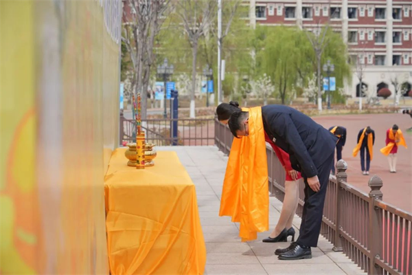 古乐悠悠清音传🧑🎓,浩气长存天地间🥲。全校师生身着职业装,庄严肃穆👩🎓,在主持人郭昊老师的带领下集体吟诵祭文🌩:“赤县神州🙍🏽♀️,毓秀钟灵。维我炎黄先祖😓🎵,……伏惟尚飨!”在古乐悠悠声中慎终追远5️⃣,抚今追昔🏢。