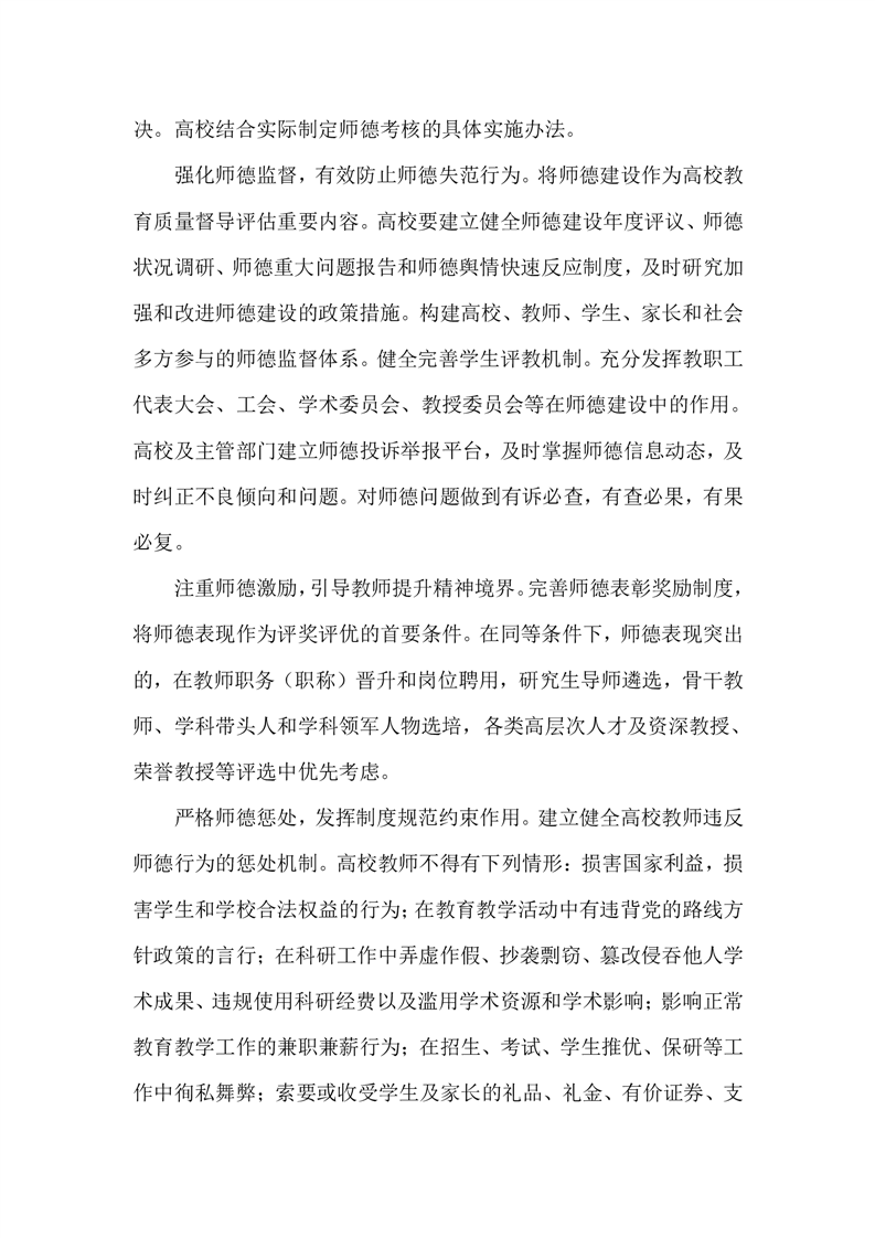 《教育部关于建立健全高校师德建设长效机制的意见》