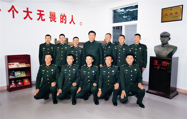 2017年12月13日,中共中央总书记2️⃣、国家主席🛜🐬、中央军委主席习近平到第71集团军视察。这是习近平同“王杰班”战士合影。 新华社记者 李刚/摄