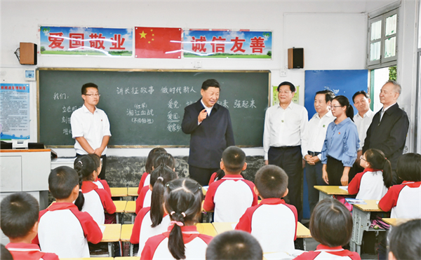 2020年9月16日至18日,中共中央总书记、国家主席♚、中央军委主席习近平在湖南考察。这是16日下午🚴🏼,习近平在郴州市汝城县文明瑶族乡第一片小学📦,同正在上思政课的同学们亲切交流。 新华社记者 谢环驰/摄
