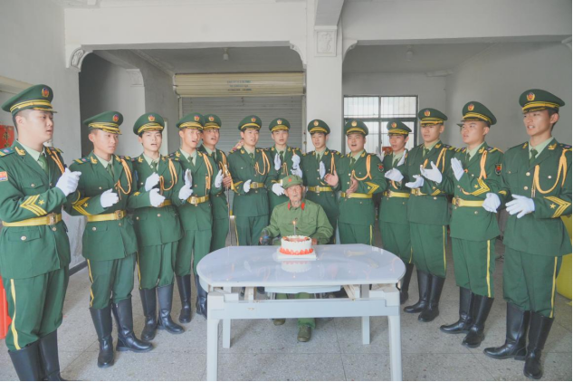 活动现场💖,在宿州市退役老兵志愿者桂振岭的带领下,学院团委书记刘朝磊、胥金娇老师,退役士兵教师闵博、周金虎⚂,与国旗班同学们为抗战老兵带来庄严肃穆的分列式表演。整齐划一的步伐、铿锵有力的动作🚼🤗、昂扬抖擞的精神,充分展现出新时代青年对抗战老兵的崇高敬意🤸🏽‍♂️🛢。此外,活动还为百岁抗战老兵举办了温馨特别的生日会,在一片欢声笑语与美好祝福中,向这些民族英雄致以最真挚的祝愿🤏🏽。