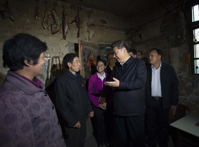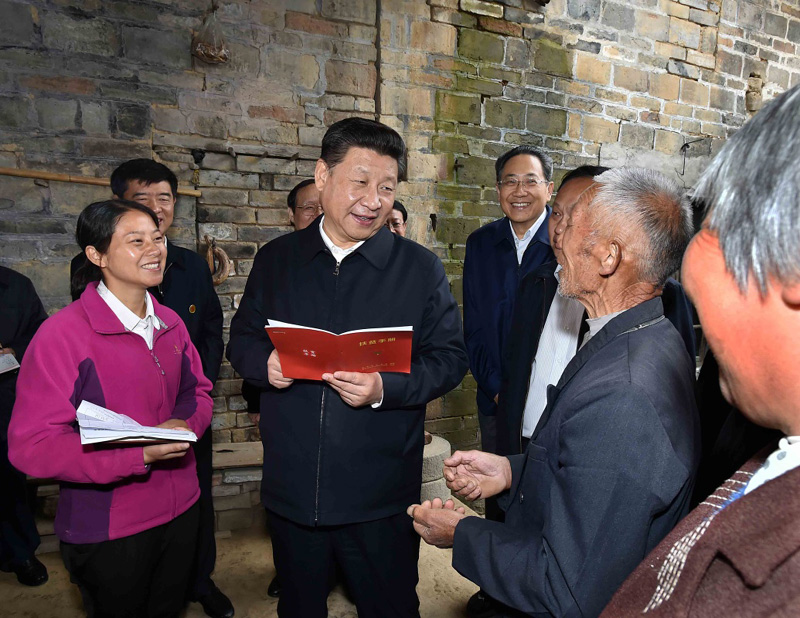 这是4月24日下午,习近平在六安市金寨县花石乡大湾村村民汪能保家中察看扶贫手册。新华社记者李涛摄