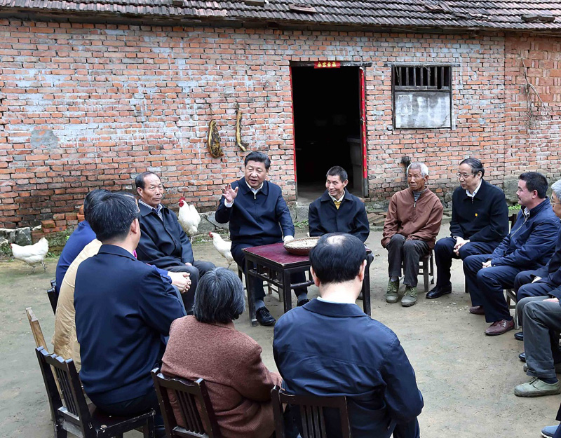 这是4月25日下午,习近平在滁州市凤阳县小岗村向村民们问好。新华社记者李涛摄