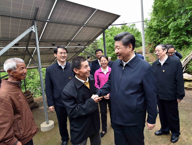 这是4月24日下午,习近平在六安市金寨县花石乡大湾村了解光伏发电扶贫电站建设运行情况🐹。新华社记者李涛摄