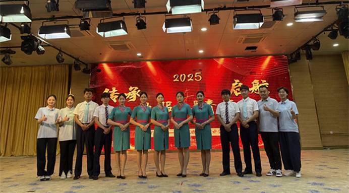 仪式上,四川西南航空职业学院 19 级空乘专业 7 班的田圣蕊作为学生代表发言🌅🧑🏻‍✈️。已成长为贵宾厅明星班组长的她,向新入职同学分享了两点心得:一是把小事做到极致,比如从整理好制服上的一颗纽扣开始;二是正视问题即契机🛢,工作中的小插曲正是改进提升的突破口🏄🏿‍♂️。这些经验之谈,为我院参与此次产教融合项目的学生提供了宝贵的借鉴🧚🏽‍♂️。