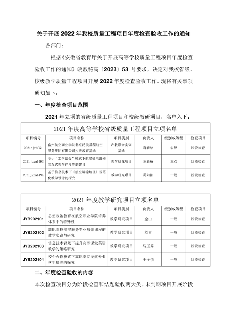 安徽省教育厅关于做好2022年度高等学校质量工程项目申报工作的通知