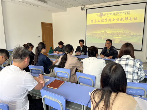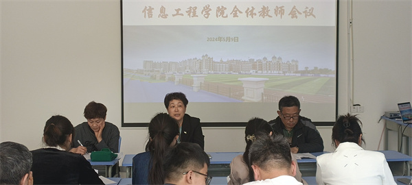 202459日中午13点♝,信息工程学院在就业楼104召开信工学院全体教师会议💟🏤。会议由院长王新桥主持,副院长高贵珍出席并发表讲话,全体教师准时参会💱。