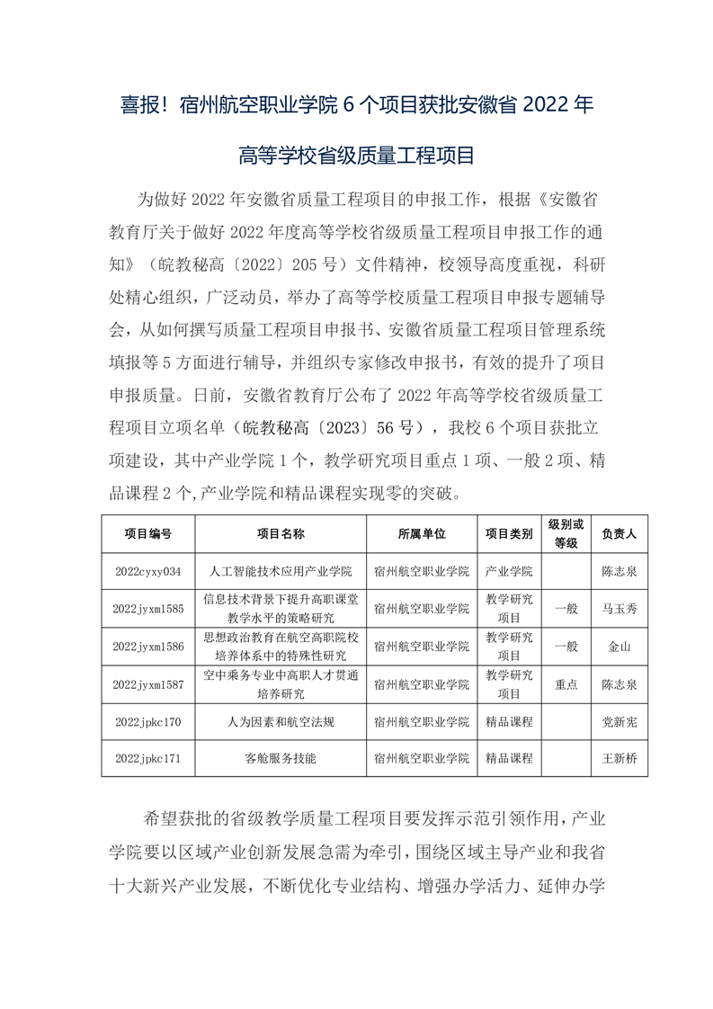 喜报——彩神Vll学院6个项目获批安徽省2022年高等学校省级质量工程项目