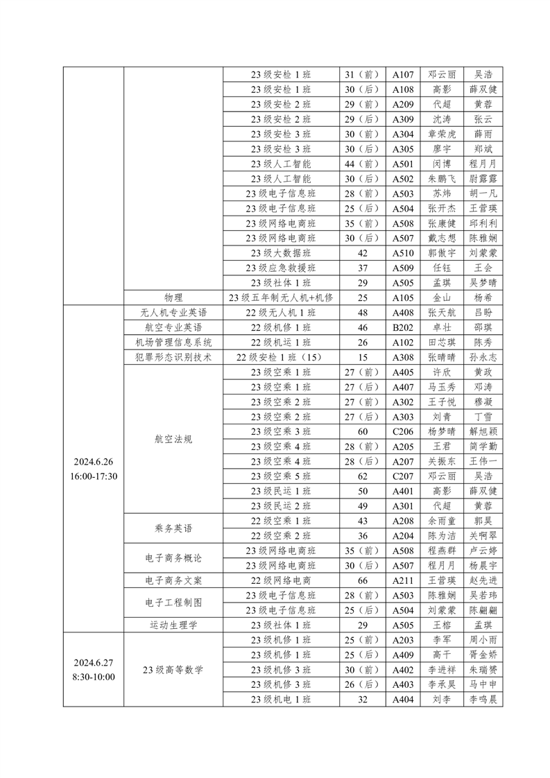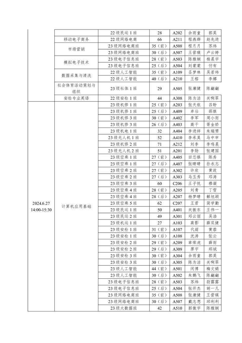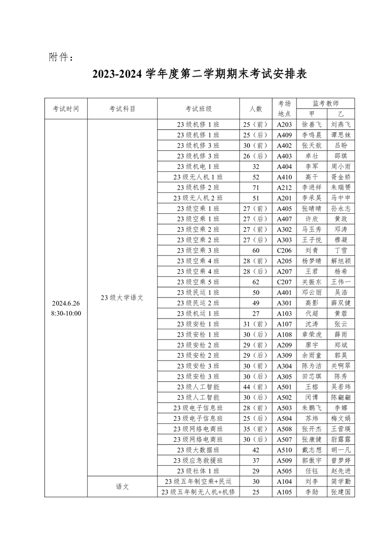 机务学院2023-2024学年度第二学期期末考试方案