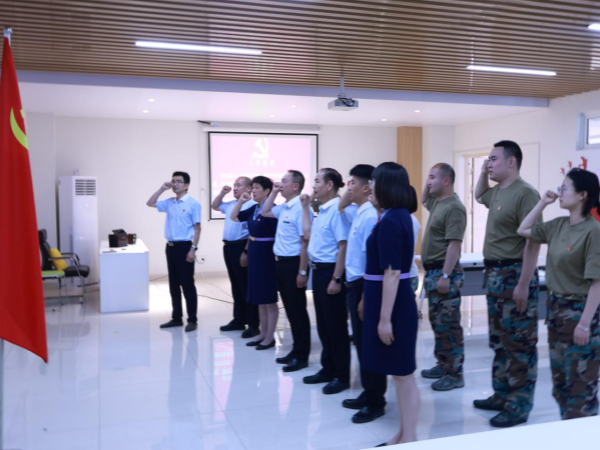 随后,在鲜红的党旗见证下,全体党员和预备党员重温了入党誓词,掷地有声的誓词在会场久久回荡,激昂的誓言传递着心心向党的坚定意志。