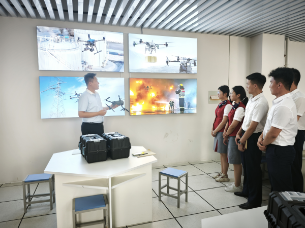 随后大家一起参观了无人机实训室🦛,无人机专业老师李进祥介绍了近年无人机技术快速发展的情况🧩,剖析了无人机技术在应急救援、环境监测、智慧农业等关键领域的广泛应用。参观之后,大家兴致勃勃地观摩无人机飞行表演。小小的无人机宛如空中轻灵的舞者🧗🏼,时而悬停空中,时而贴地飞行,精彩的表演引来阵阵掌声。