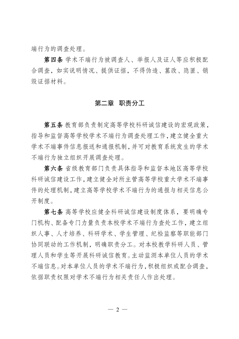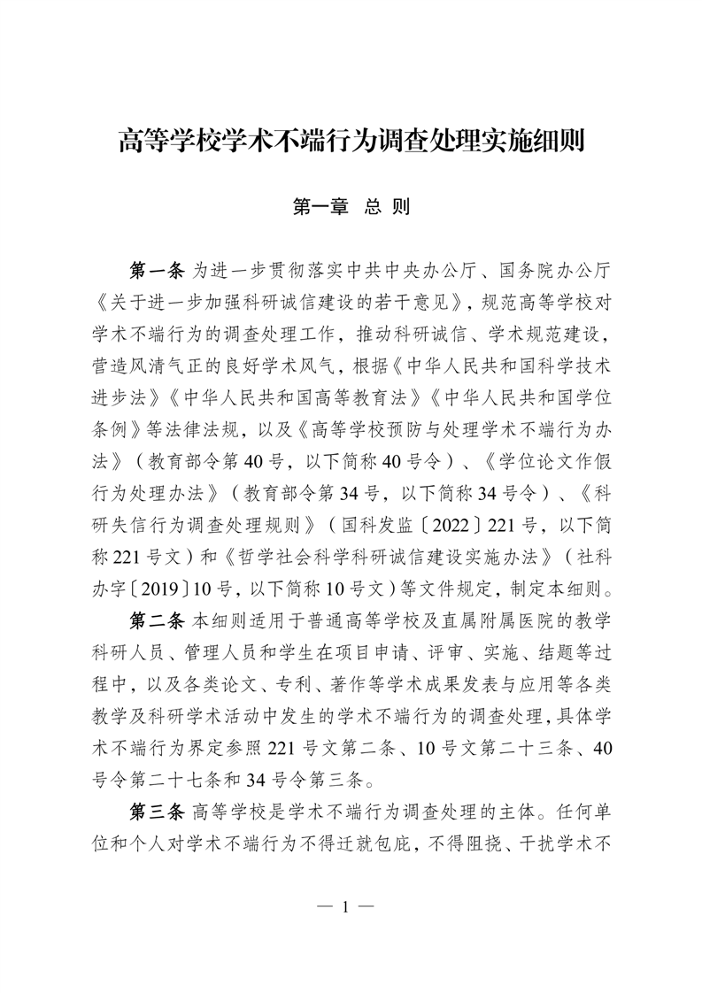 教育部关于印发 《高等学校学术不端行为调查处理实施细则》的通知