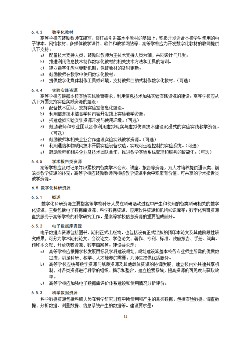 教育部关于发布《高等学校数字校园建设规范(试行)》的通知