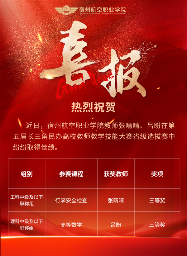 喜报🈹!宿航教师在长三角民办高校教学技能大赛中斩获佳绩